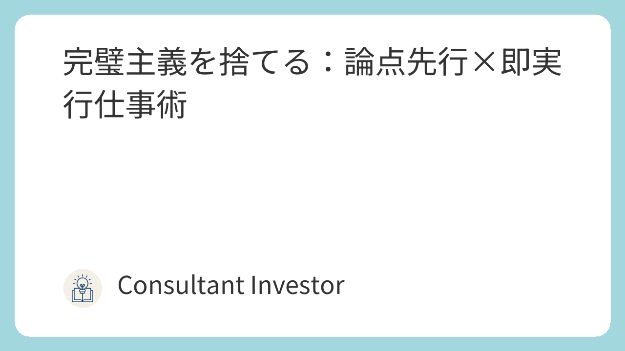 - 完璧主義を捨て、「論点から動く」ことを恐れない