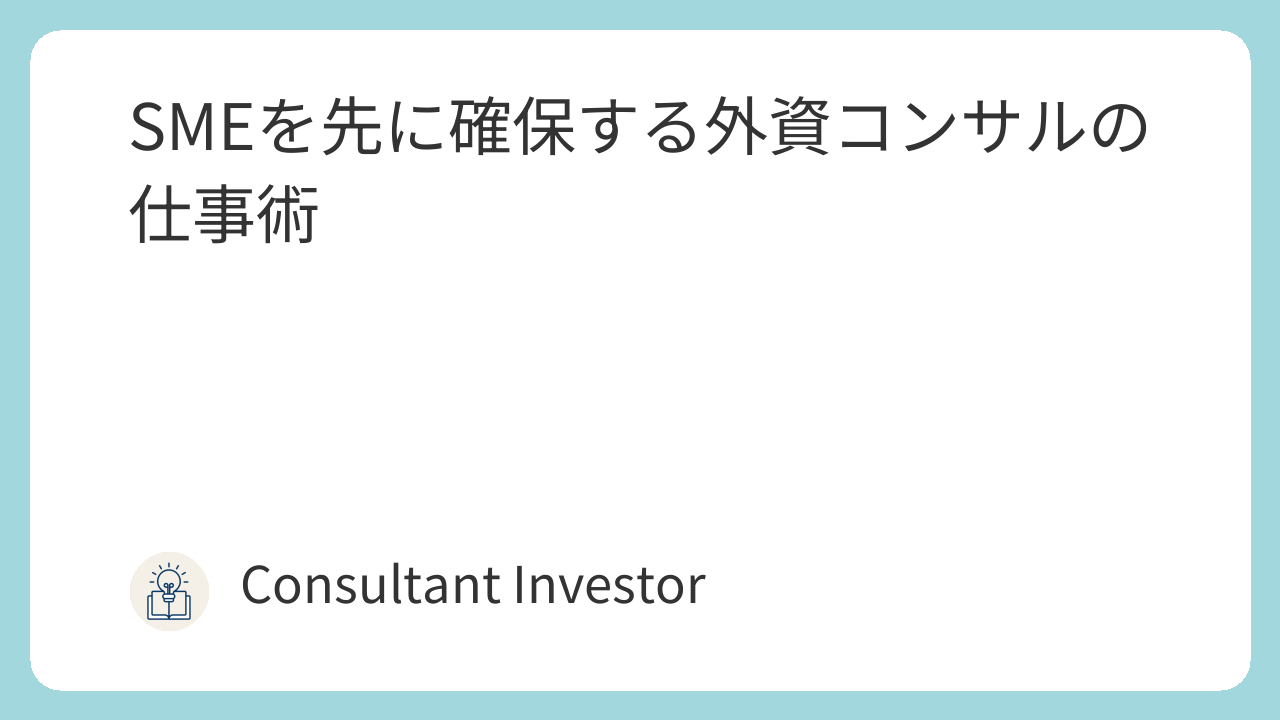 外資コンサルの現場では、「すべてを自力で賄わない」という発想が欠かせません。特に専門知識が必要な領域は、初期段階で有識者(SME: Subject Matter Expert)の“窓口”を確保しておくことが成功のカギになります。本記事では、不足領域のSMEを早期に押さえる理由や、実務で役立つ具体的なアプローチを紹介します。